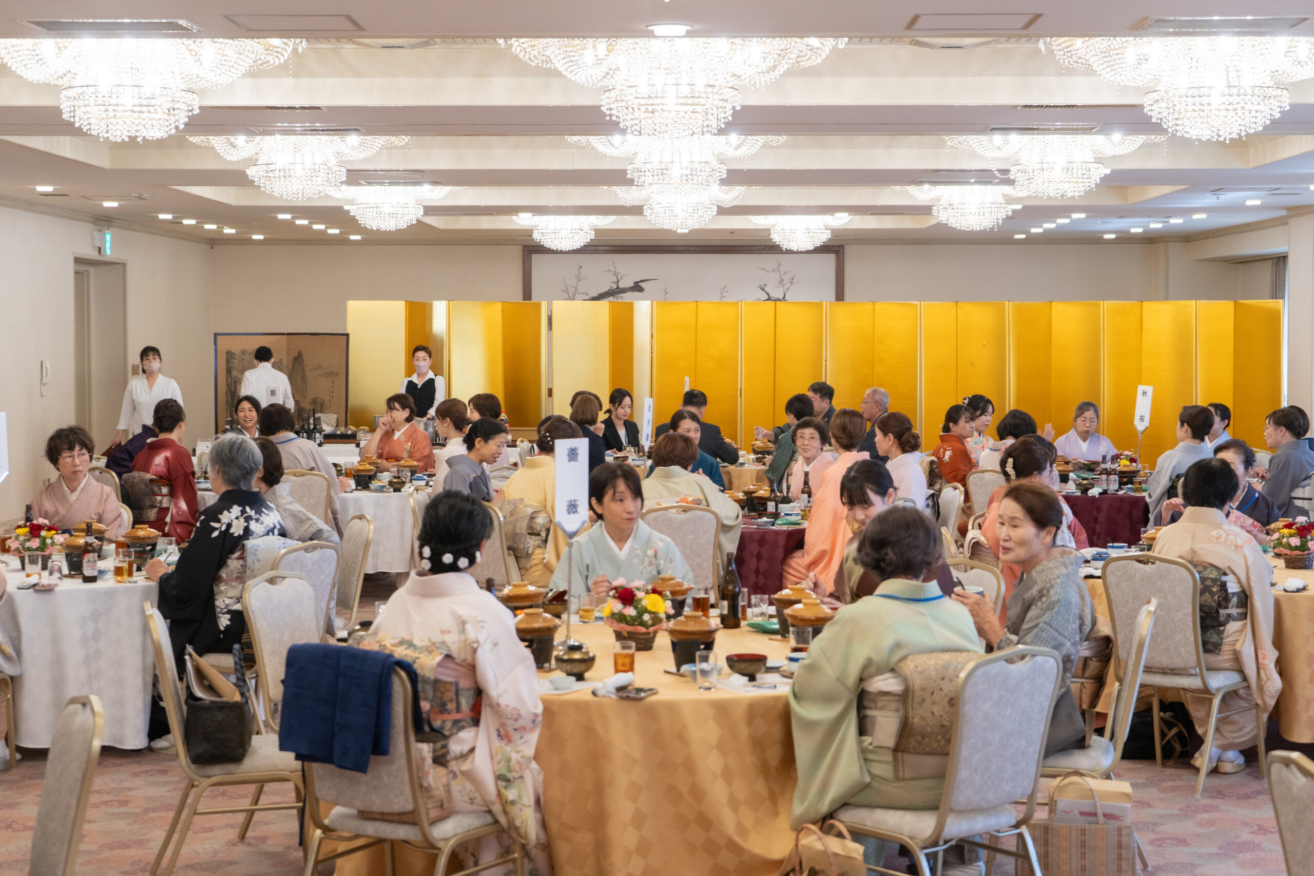 初級教室の受講はすべて無料ですが、修了式や修了記念パーティー代の実費(第48期は計12,000円)の実費はちょうだいしています。また、セミナー時の昼食代は自己負担となります。なお、初級教室修了後にさらに他装の技術を学びたい方や着付け講師を目指したい方は、有料の中級教室、師範科教室に進級も可能です。