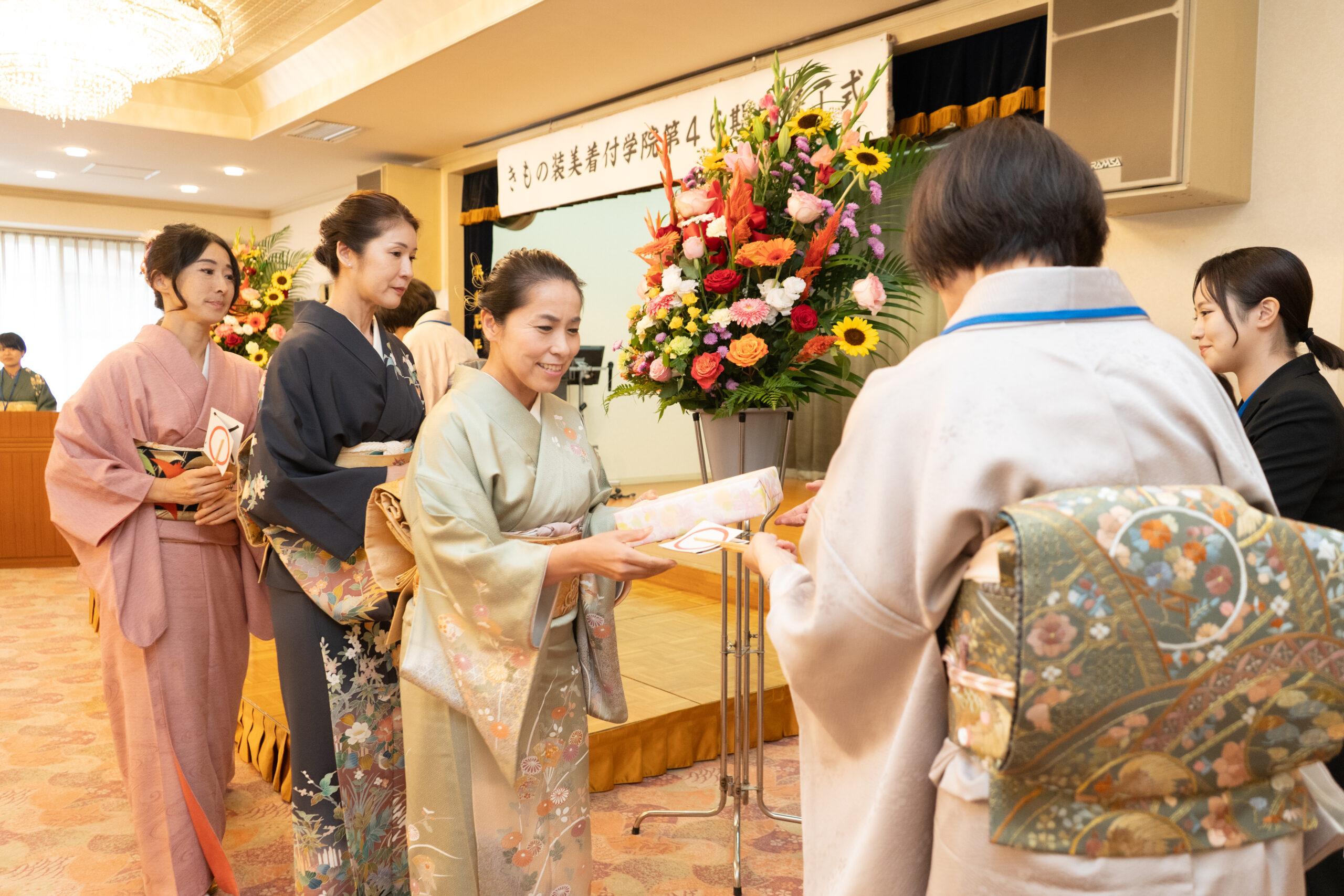 合同修了式&記念パーティーへご自分で着物を着て参加頂きます。