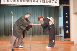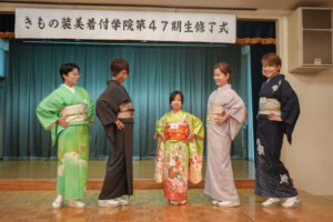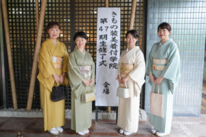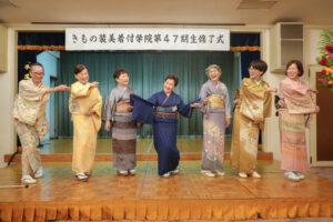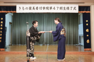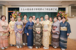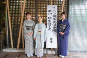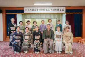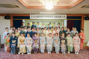 第47期は53名の皆様が修了され、師範科教室2名と中級教室4名の修了生もいらっしゃいました。師範科教室を修了された2名は今後きもの装美着付け学院の講師として活躍される予定です。