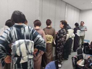 そして、なかなかお目にかかることのできない素晴らしい紬などが並べられ、先生方も真剣に説明に耳を傾けておられました。