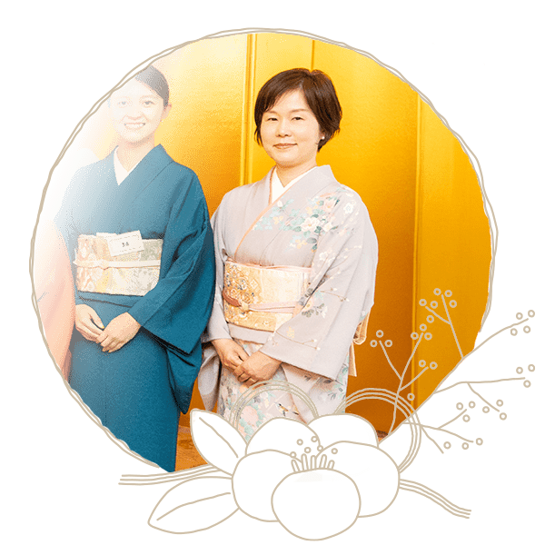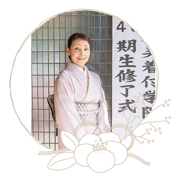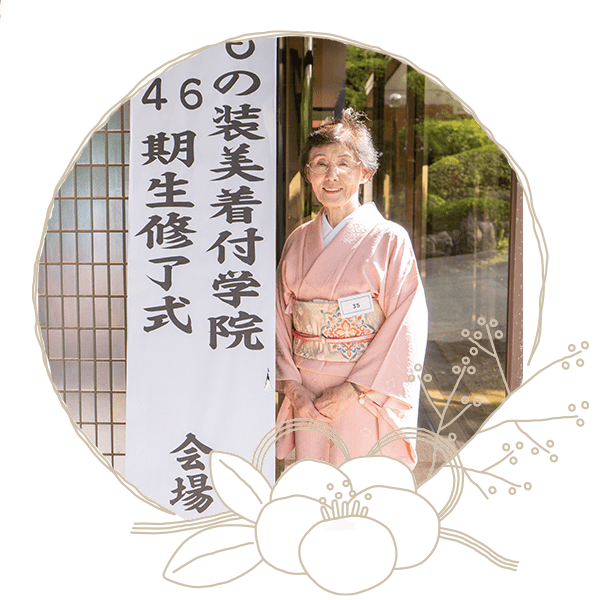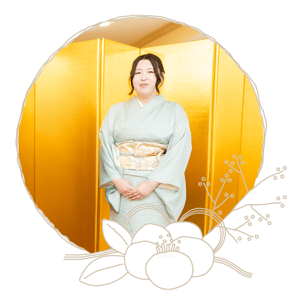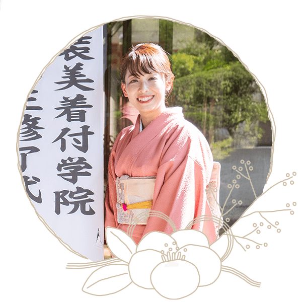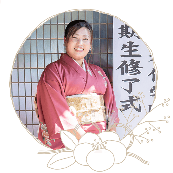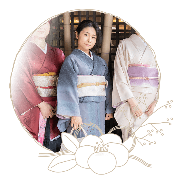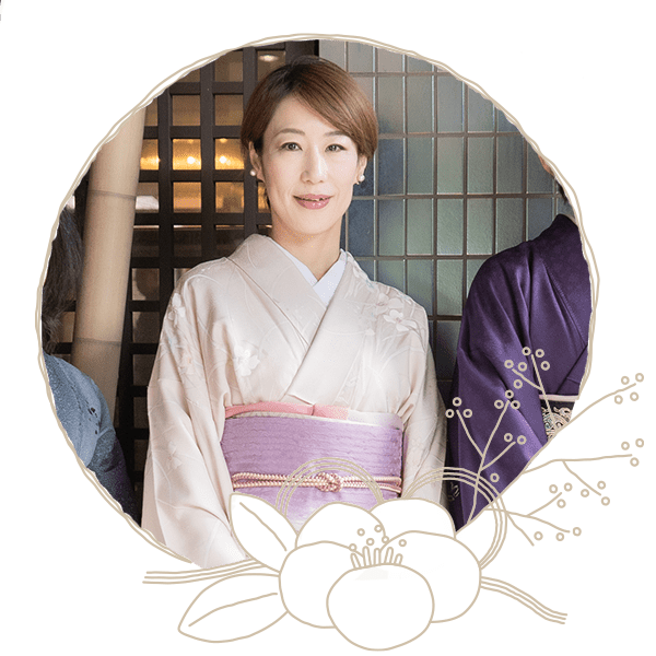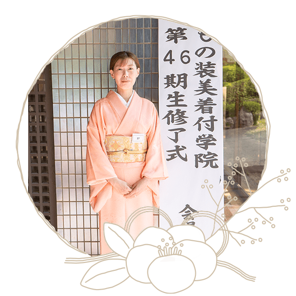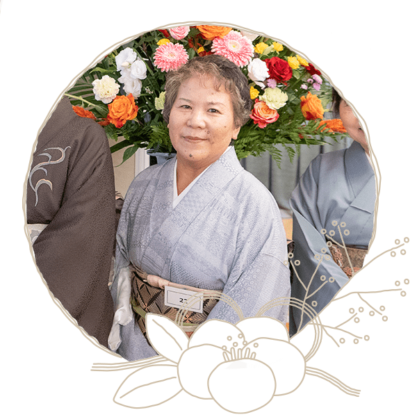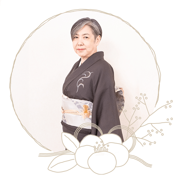母が同教室で着付けを教えていただいていたこともあり「自分で着物が着られたら素敵だな…」と前々から思っていました。職業柄、着物を着る機会が必ずあるため入会しました。丁寧な指導はもちろん、着物や帯についての知識も身につけられ、街中でお着物を着ている方をみると「あの時勉強した…」と分かることも増え、着ている時も着ていない時も楽しめるようになりました。今後も着物を着てみて楽しみたいと思います。