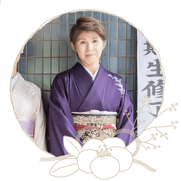 母が同教室で着付けを教えていただいていたこともあり「自分で着物が着られたら素敵だな…」と前々から思っていました。職業柄、着物を着る機会が必ずあるため入会しました。丁寧な指導はもちろん、着物や帯についての知識も身につけられ、街中でお着物を着ている方をみると「あの時勉強した…」と分かることも増え、着ている時も着ていない時も楽しめるようになりました。今後も着物を着てみて楽しみたいと思います。